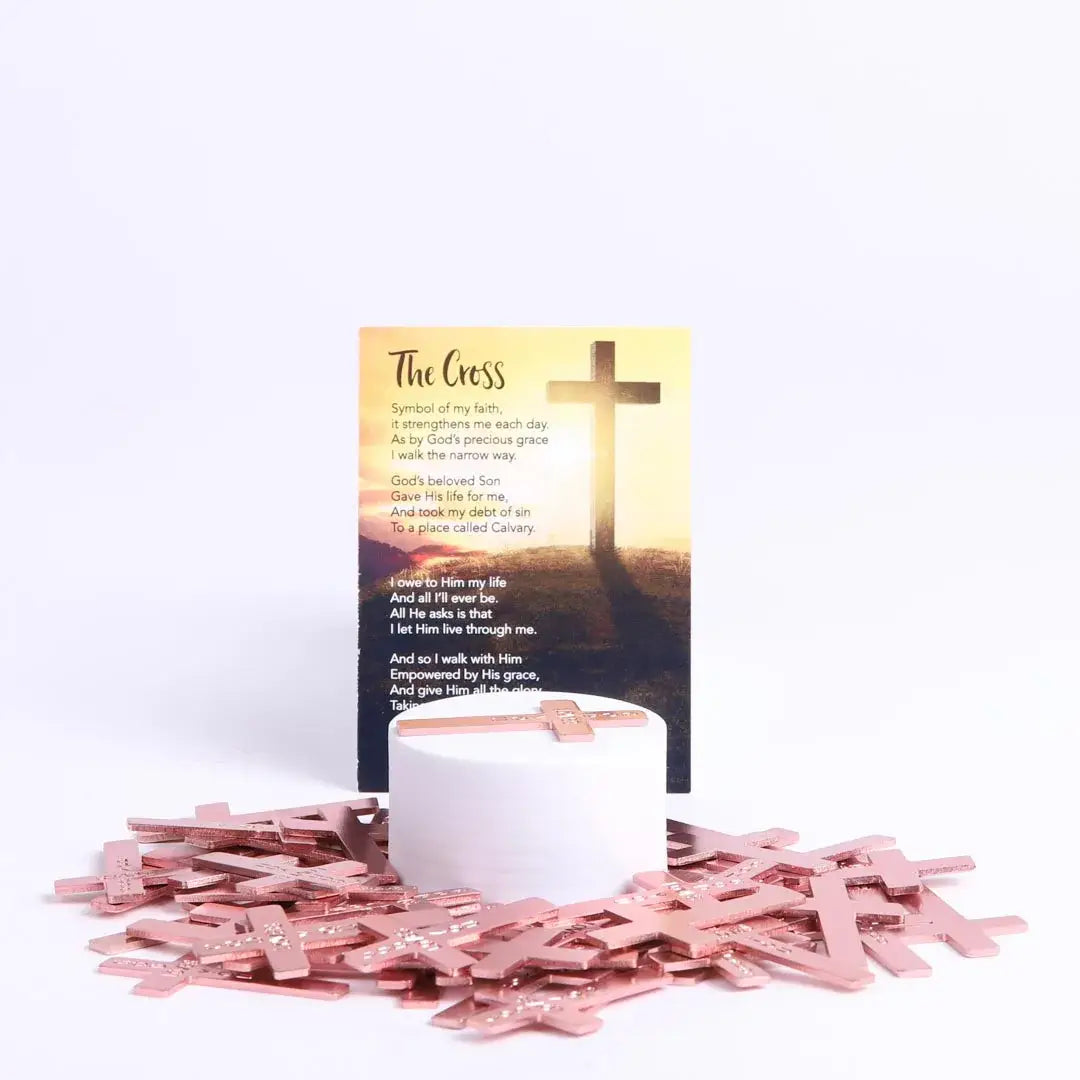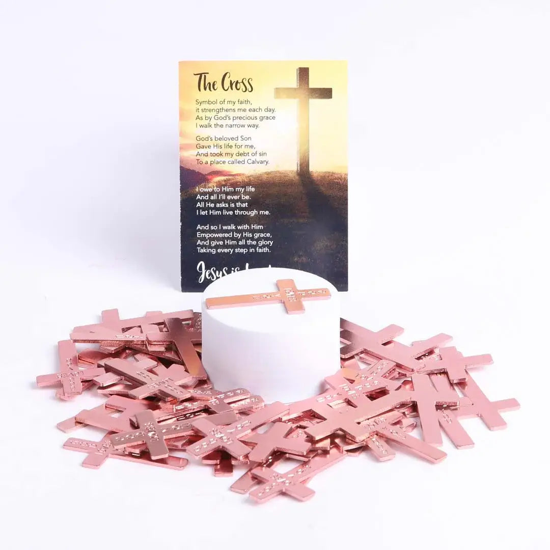 There's nothing like a reminder of all the things Jesus has done for you, and these pocket crosses serve as a great reminder that's easy to carry with you. Made of smooth and lightweight aluminum that won't tarnish, these cross shapes are 1.75" x 1" and have rounded corners and engraved messages.