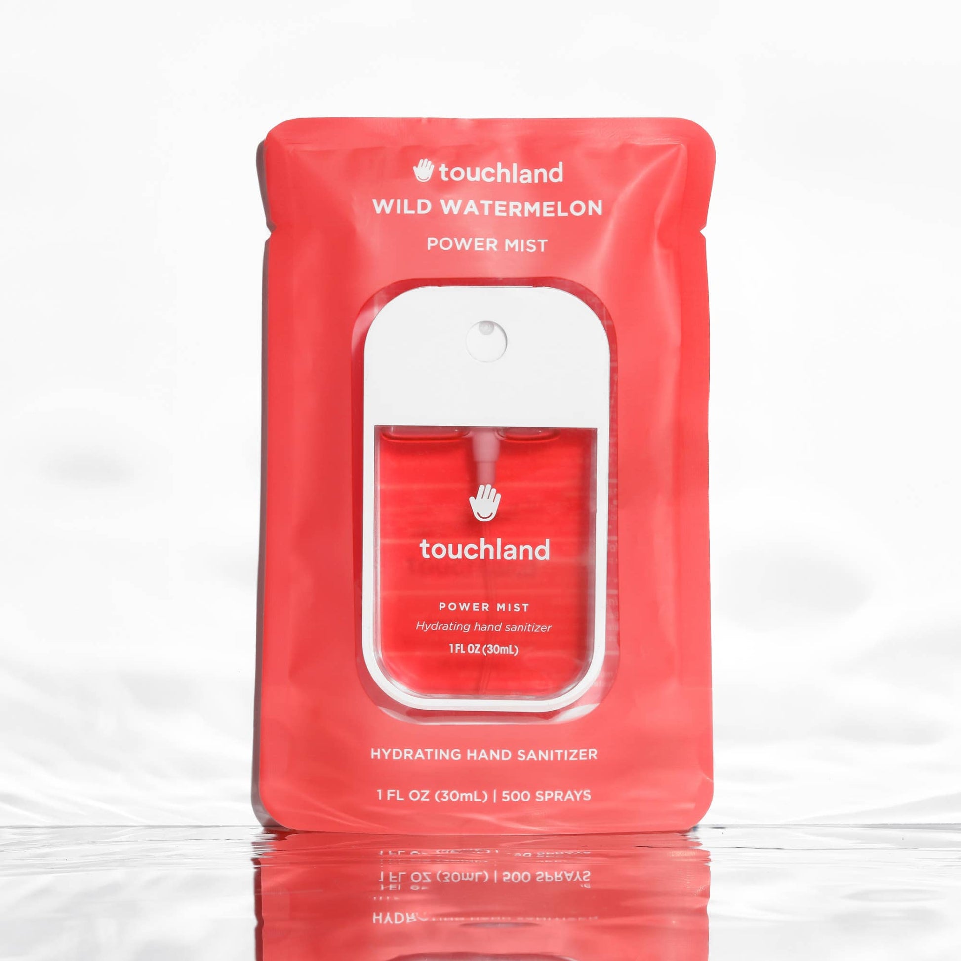 TOP NOTES: Fresh Watermelon, Tart Kiwi, Peach Nectar. HEART NOTES: Jasmine Petals, Watery Violet, Crisp Apple. BASE NOTES: Clean Musk, Wild Greens. ● Hydrating. Fast-absorbing. Vegan. Cruelty-free. Dermatologist tested. ● Effective against most common germs. ● 500 sprays. ● 1FL OZ (30ml) ● TSA-approved. Say so long to sticky, goopy hand sanitizers, and hello to our really good, really cute hand sanitizing mist that not only cleans your hands, but makes them soft to touch, and smell good, too. Every bottle of Touchland Power Mist is packed with good-for-you, vegan, and not-sticky ingredients like Aloe Vera and essential oils that spritz lightly and evenly to keep your hands happy (not dry).