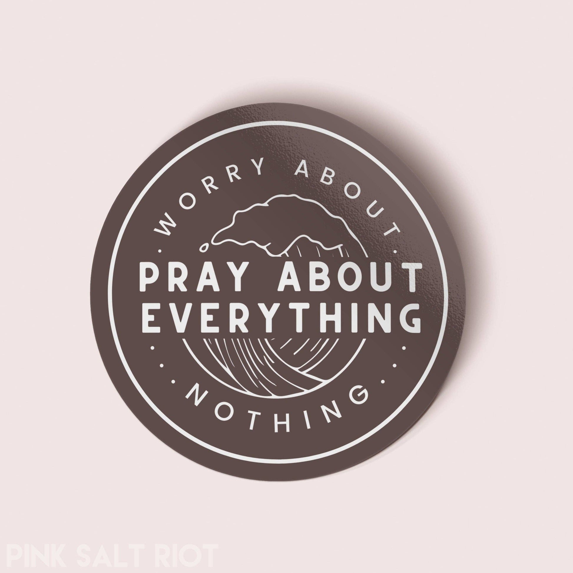 This Christian vinyl sticker is the perfect way to show your faith. It features the phrase "Pray About Everything" and is perfect for your car, laptop, or any other surface.