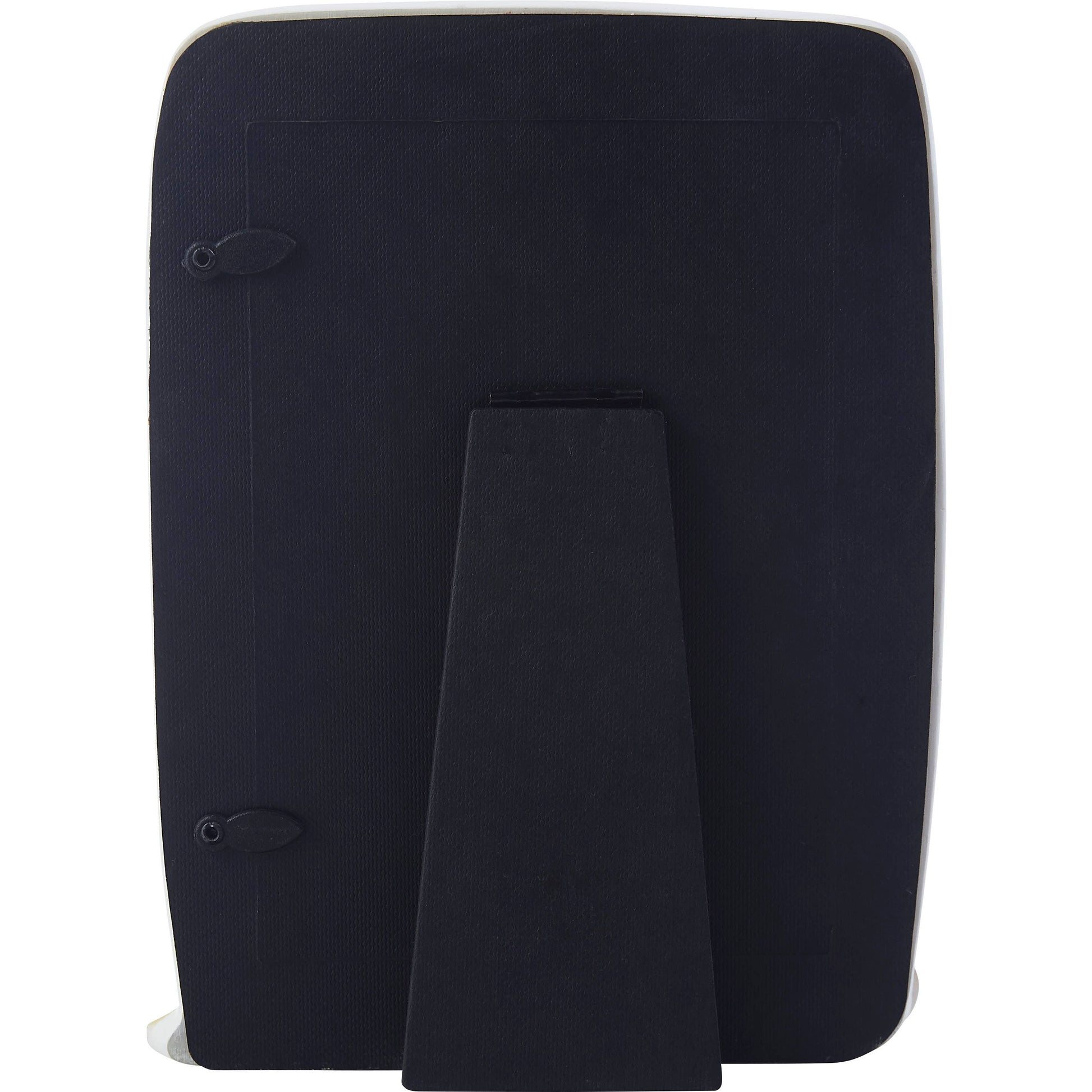 An easel back makes for easy display on dressers or shelves in Baby’s room.