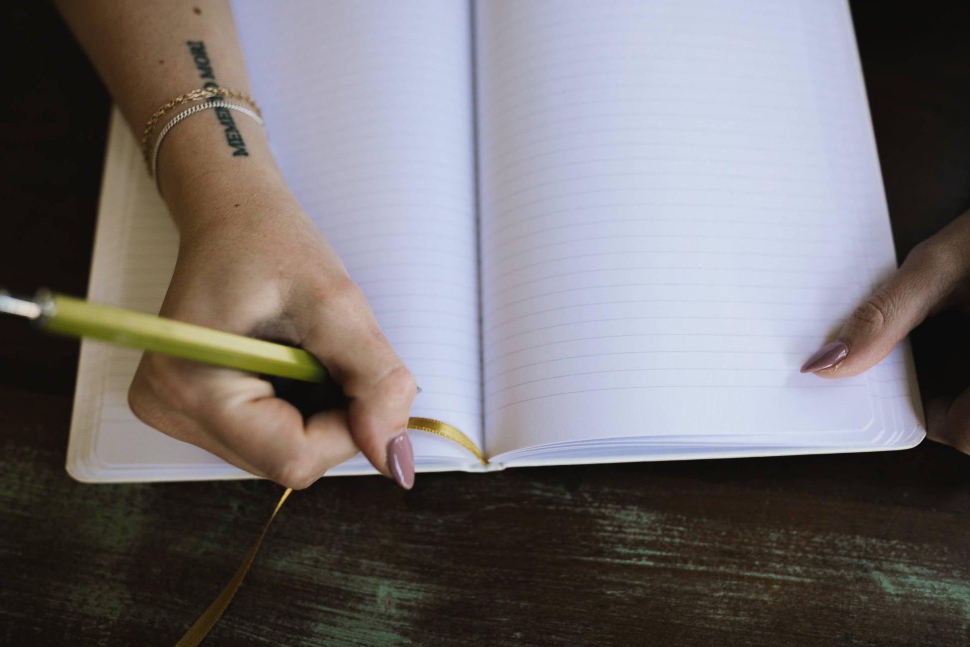 5.7" × 8.26" in. Gold ribbon page separator and 128 lined pages.