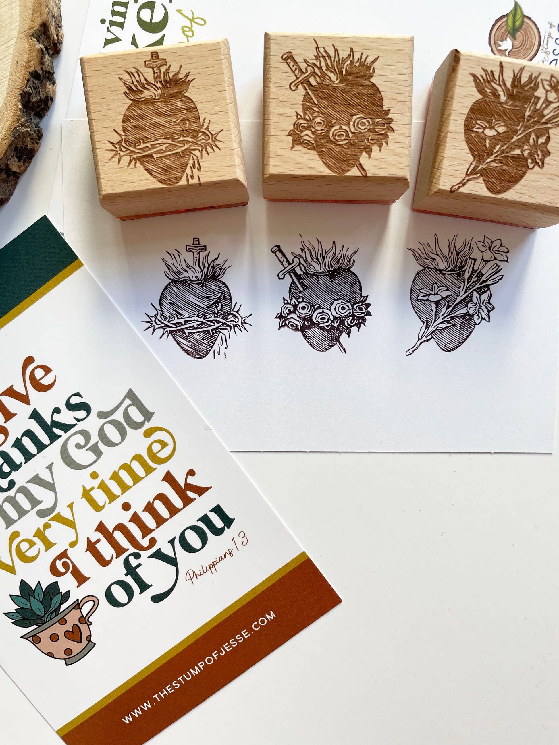 Also Available: Immaculate Heart Of Mary | Chaste Heart Of St. Joseph Rubber Stamps | Catholic Gift | Catholic Crafts | Teacher Gift Beautiful and delicate wooden rubber stamps of the 3 sacred hearts (Jesus, Mary, and Joseph) Sacred heart of Jesus - size: 1.5 "x 1.5" Immaculate heart of mary - size: 1.5 "x 1.5" Chaste heart of St. Joseph - size: 1.5 "x 1.5".