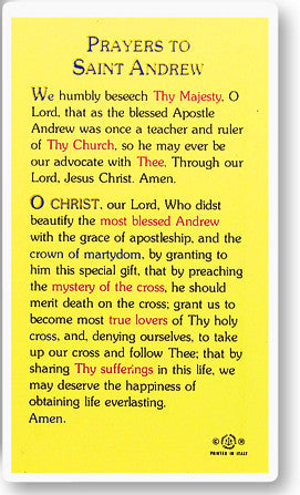 Clear, laminated Italian holy cards with Gold Accents. Features World Famous Fratelli-Bonella Artwork. 2.5" x 4.5"