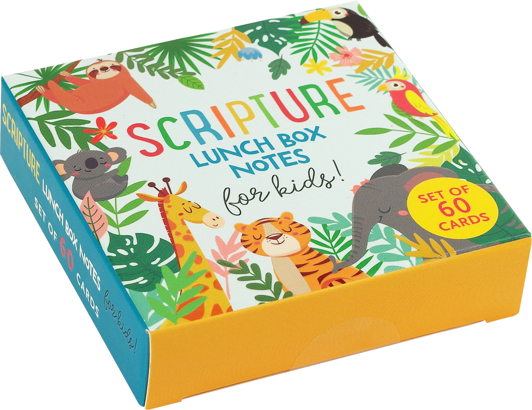 Brighten their day with Bible verses and short prayers on colorful cards! Short, uplifting Scripture verses are combined with pictures of favorite animals on 60 different cards. Fronts of cards are coated. Parents can write personal notes on the uncoated card backs for extra positivity and encouragement. Appealing full-color designs. Vibrant animal artwork makes every card a delight. Cards come packaged in a reusable box. Cards have rounded corners. Cards measure 3-1/4'' square.