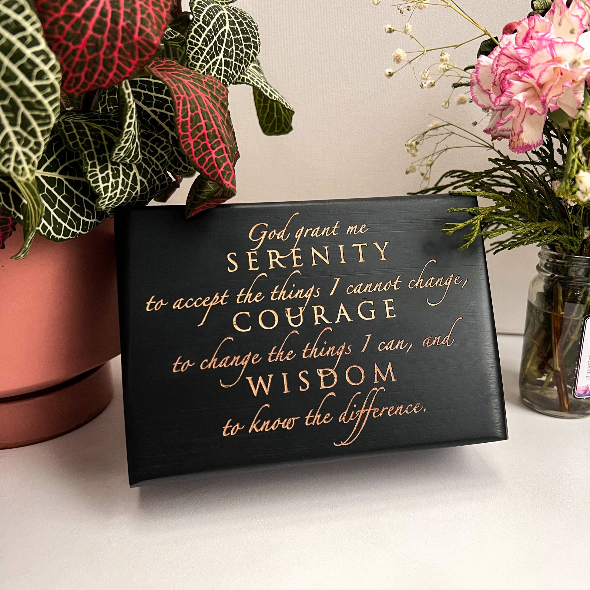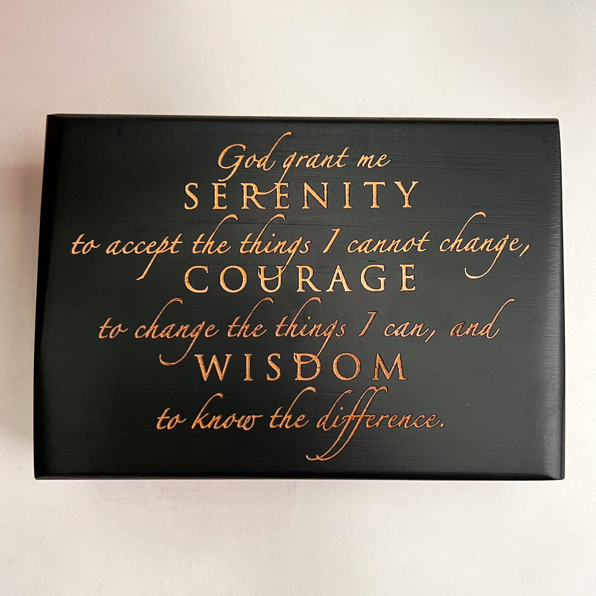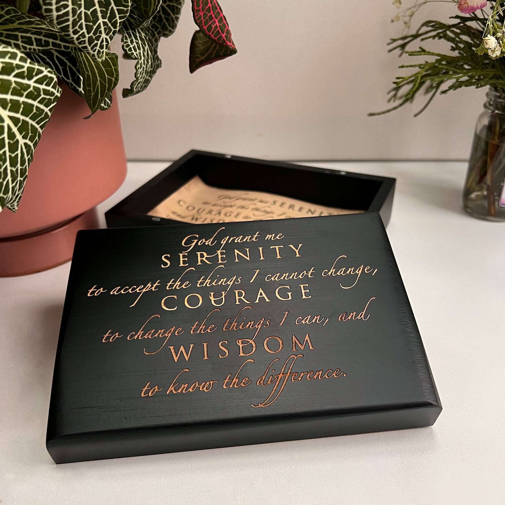 Pine box w/contemporary black painted finish inside & out, laser engraved & magnetic lid, 4 1/2" x 6" x 2", boxed.