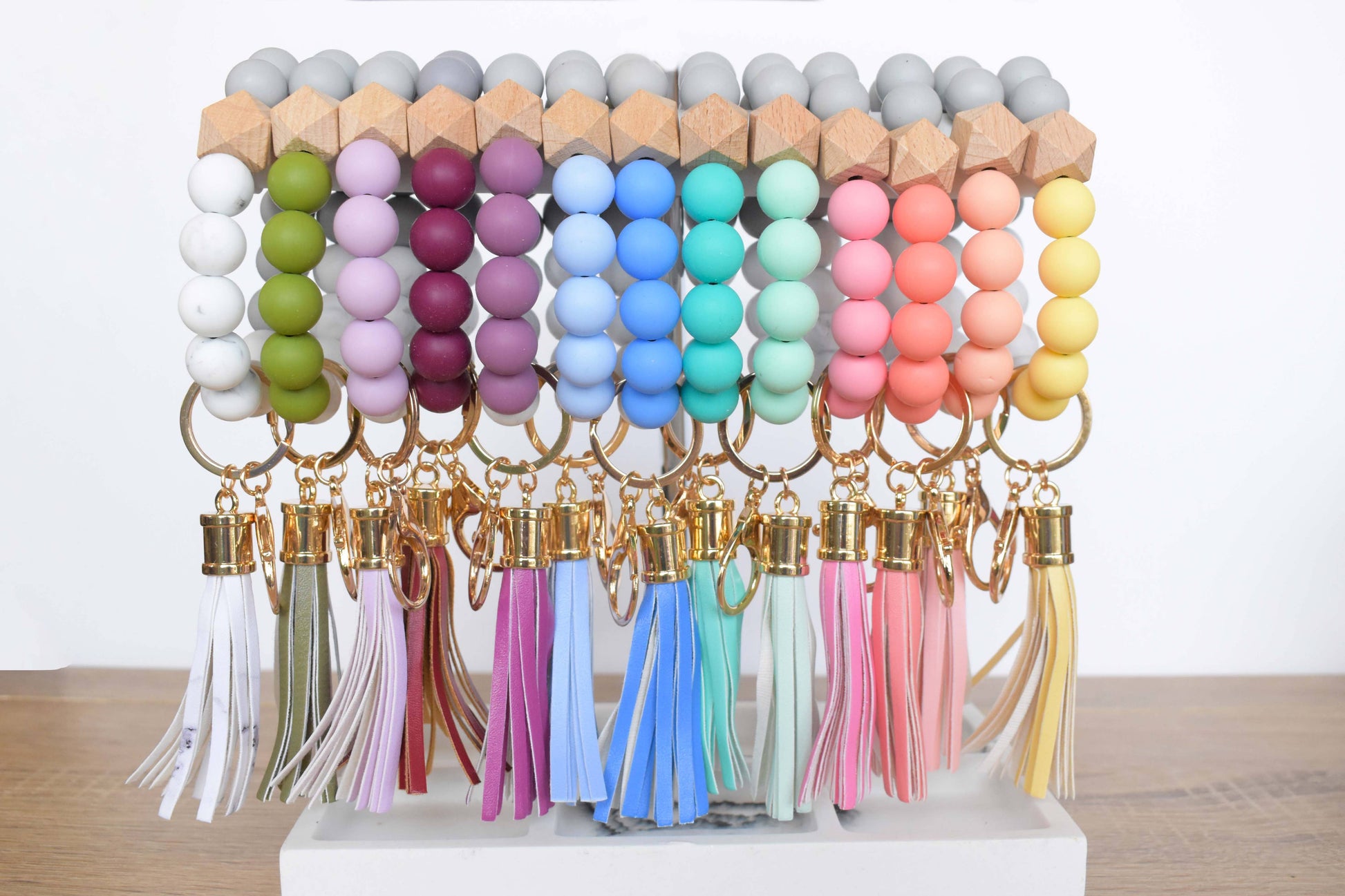 These are an easy way to keep track of your keys in a large bag or throw them around your wrist while getting things, like the kids, in and out of your vehicle. With 14 different color options, your customers can pick their favorite. Also, check out our game day collection!