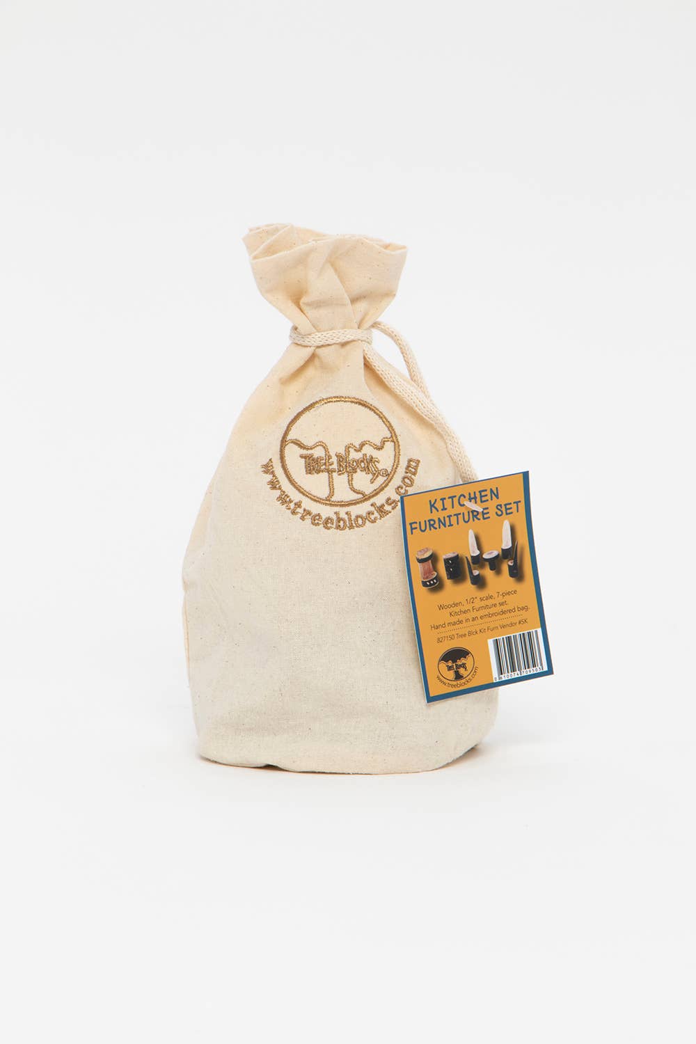 A cute miniature furniture set, hand made with real wood. The 1/2" scale kitchen set includes a table, 4 chairs, a refrigerator and a stove. A perfect accessory for one of our tree houses or any existing doll house your child may have. Through play, children explore their world and gather essential experiences necessary for their cognitive, emotional and physical development. Children need the chance to explore, ask questions, and to meet and play with other children. Role play, particularly with playmates they know and trust, is a chance for children to use their imagination, be inventive, develop social skills and grow in maturity.