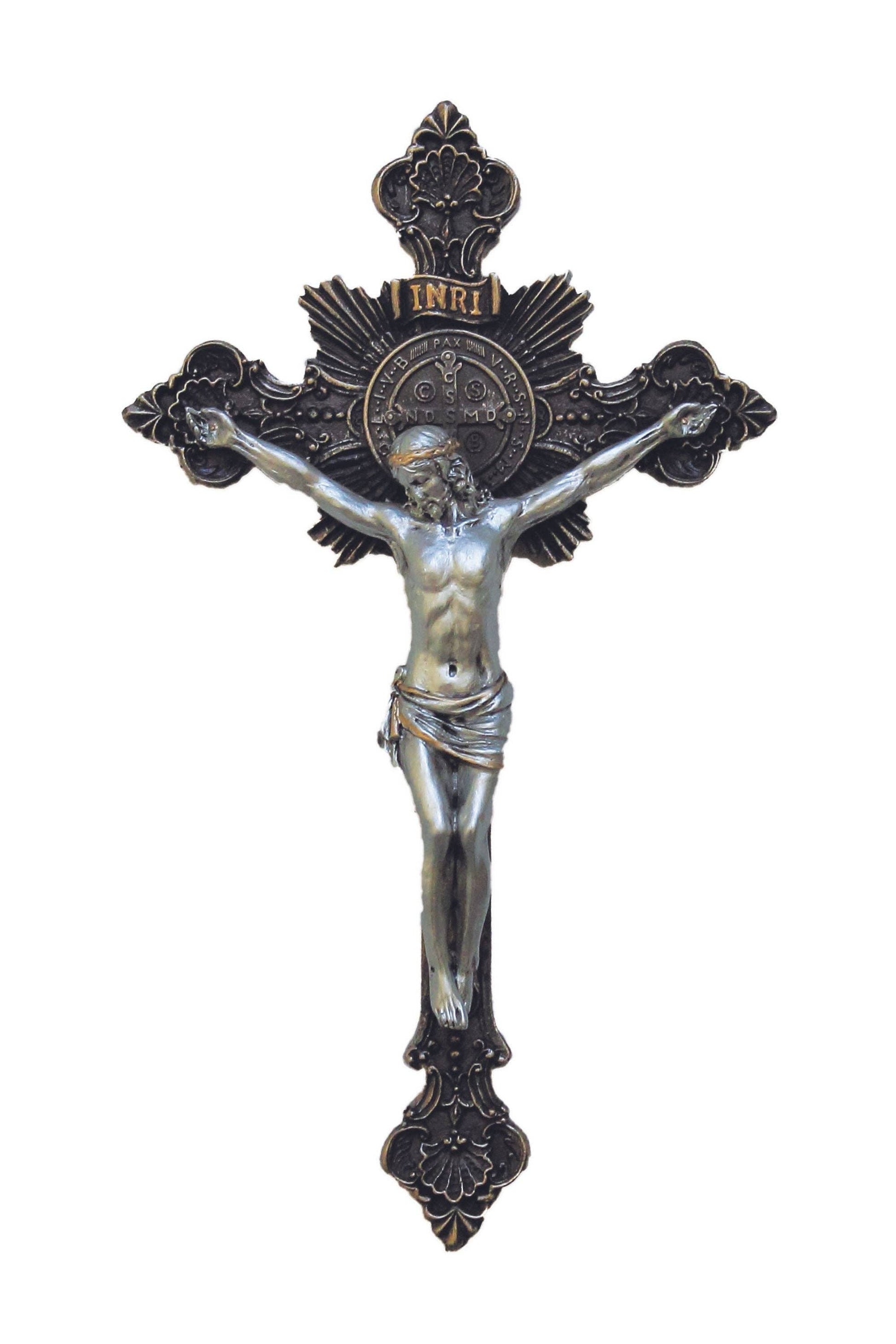 St. Benedict Crucifix Cold Cast Bronze/Pewter Style 7.75"