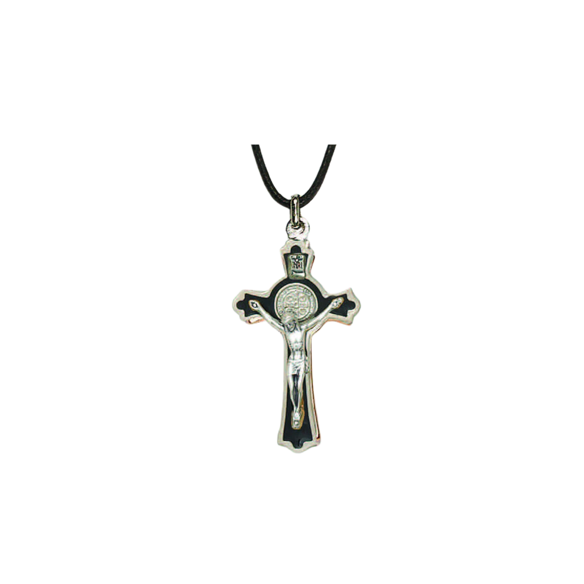 St. Benedict Black Enamel Crucifix Necklace 2.5"