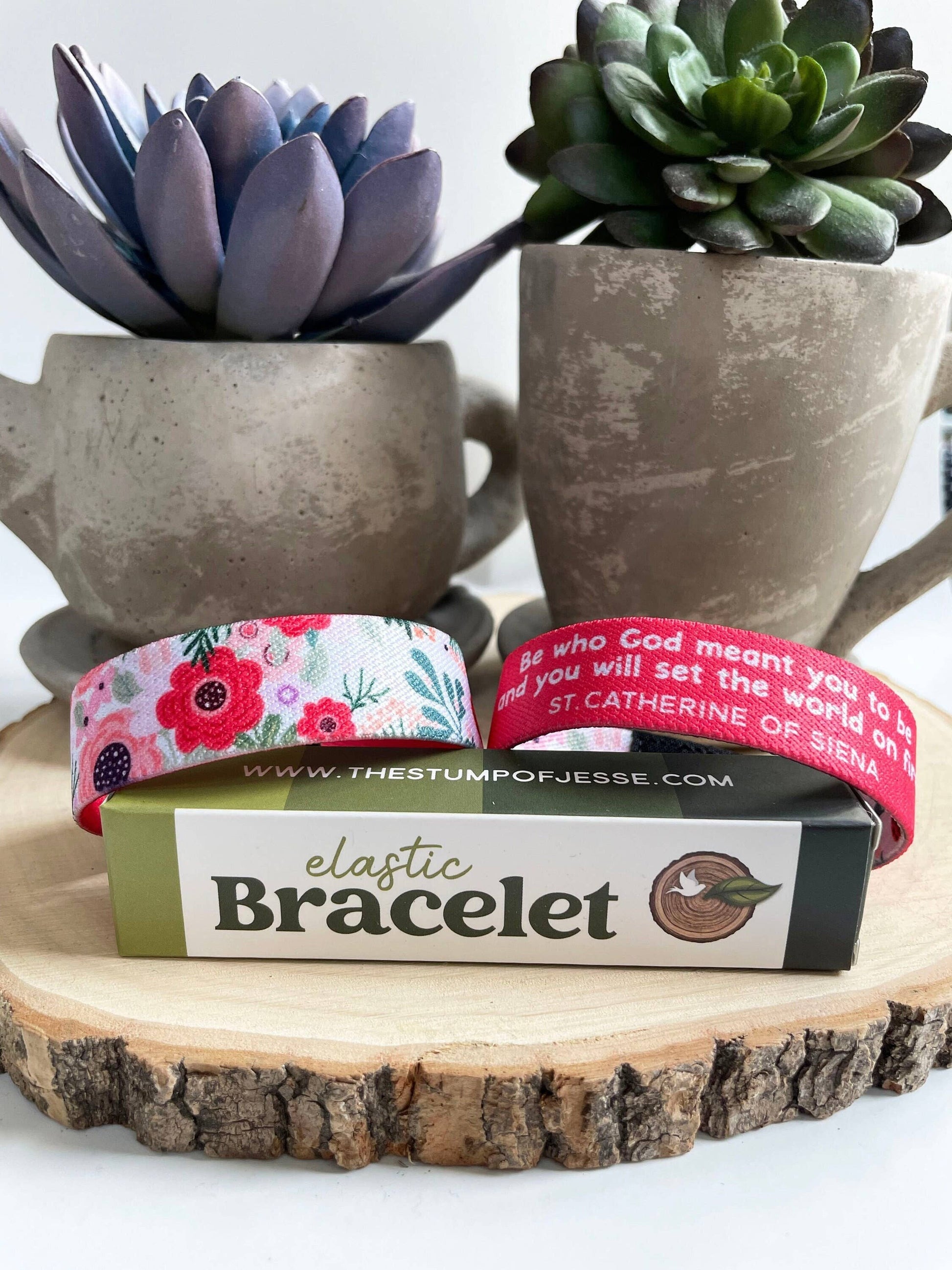 This elastic bracelet is the perfect way to show your catholic faith and share a quote from your favorite saint.