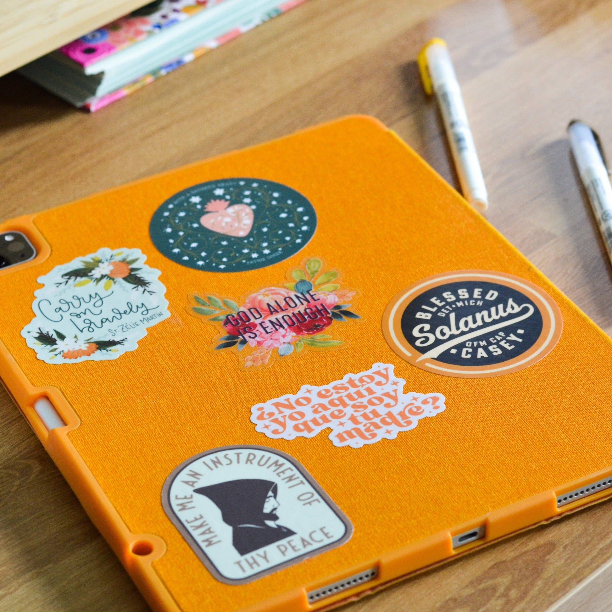 Catholic stickers that last! Dishwasher safe and weather-resistant Our design honoring St. Francis of Assisi and the anonymous prayer that is traditionally attributed to this great saint. • Contains ONE sticker • Size: 3" • Solid background vinyl sticker • Thick, durable vinyl protects your stickers from scratching, rain & sunlight • Perfect for windows, bottles, computers, tablets, cars...