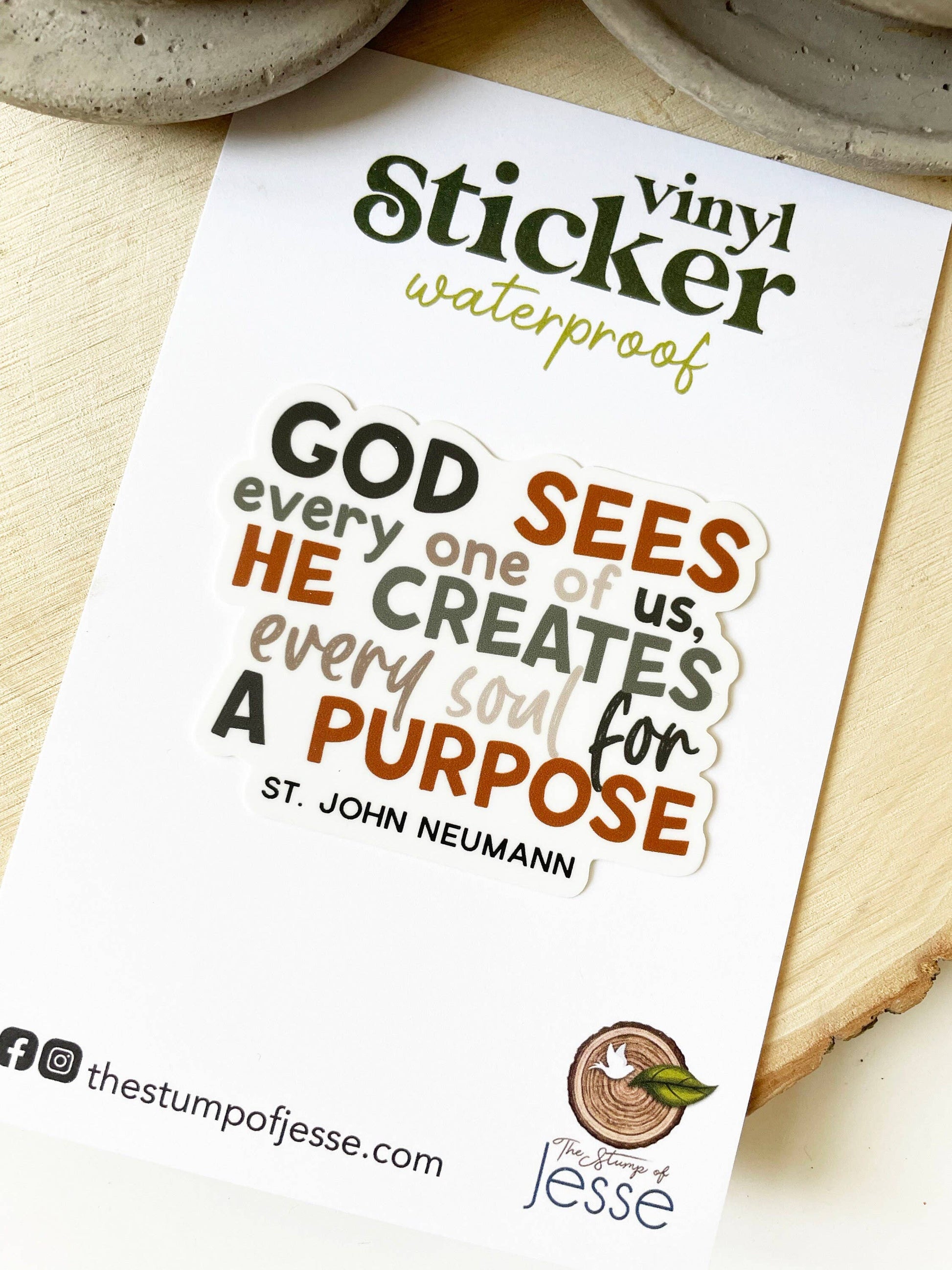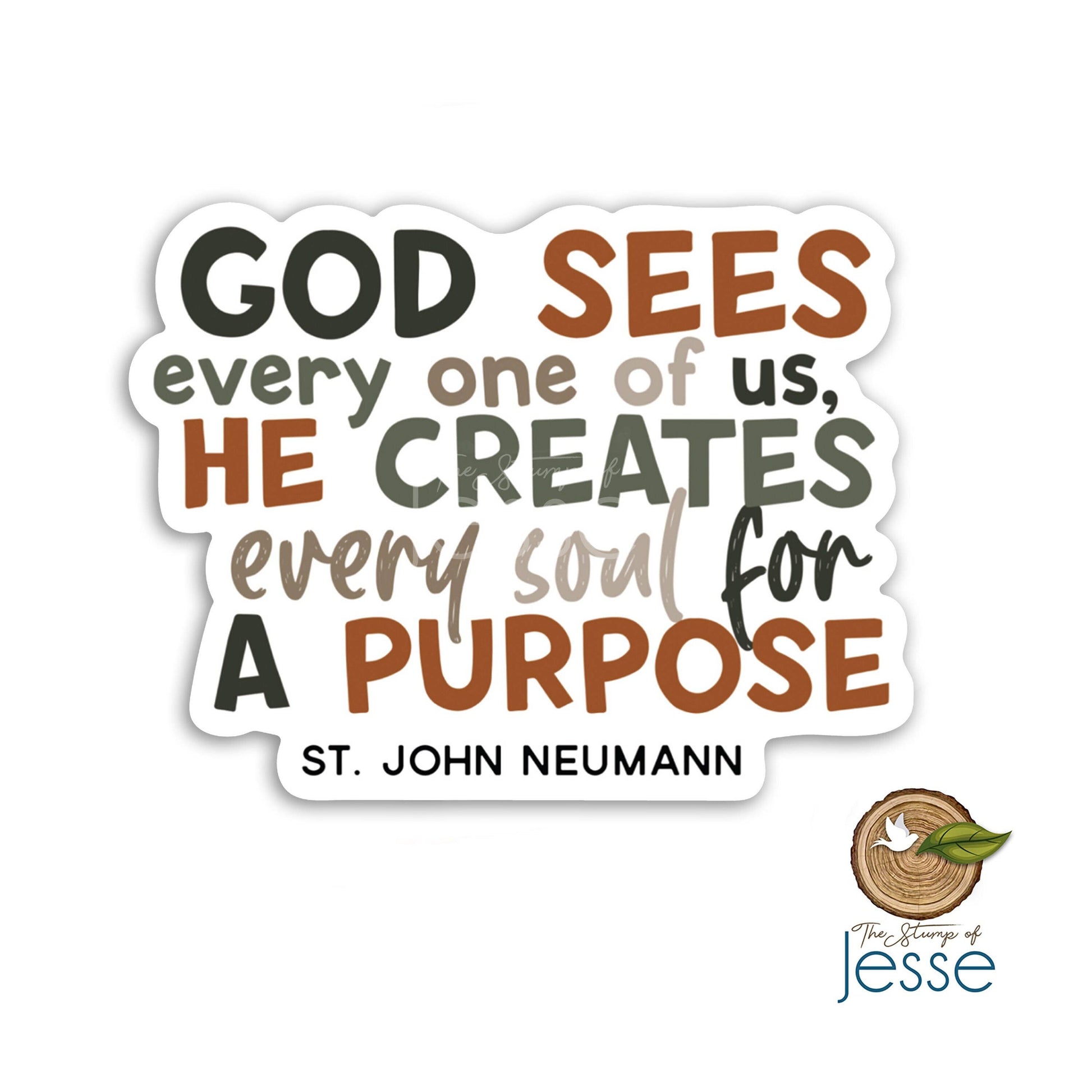 St. John Neumann | God Sees Every One Of Us He Creates Every Soul For A Purpose | Catholic Waterproof Sticker | Confirmation | Patron Saint