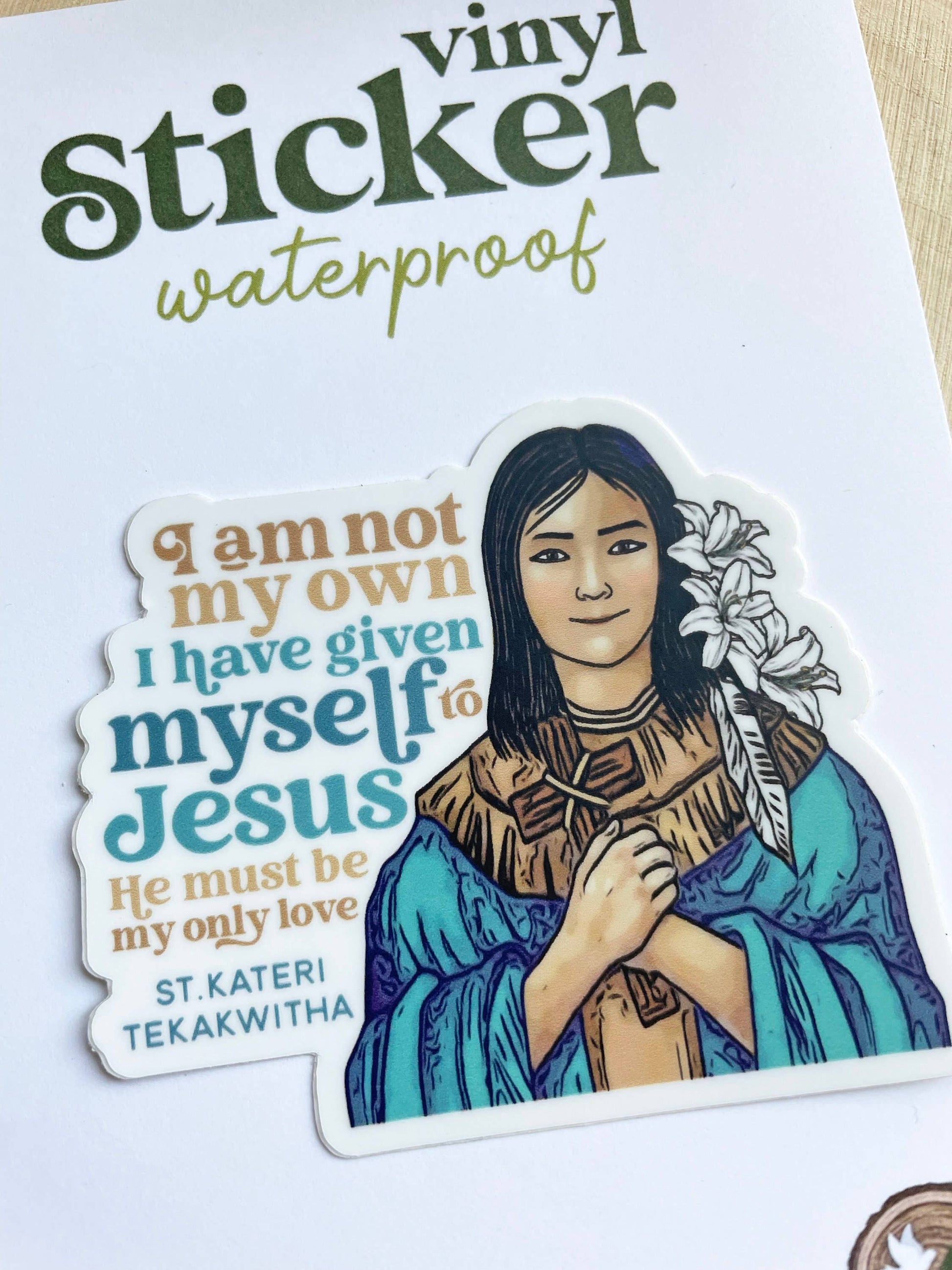 St. Kateri Tekakwitha Waterproof Vinyl Sticker | Catholic Sticker | Catholic Gift | Patron Saint | Confirmation | Native American Saint