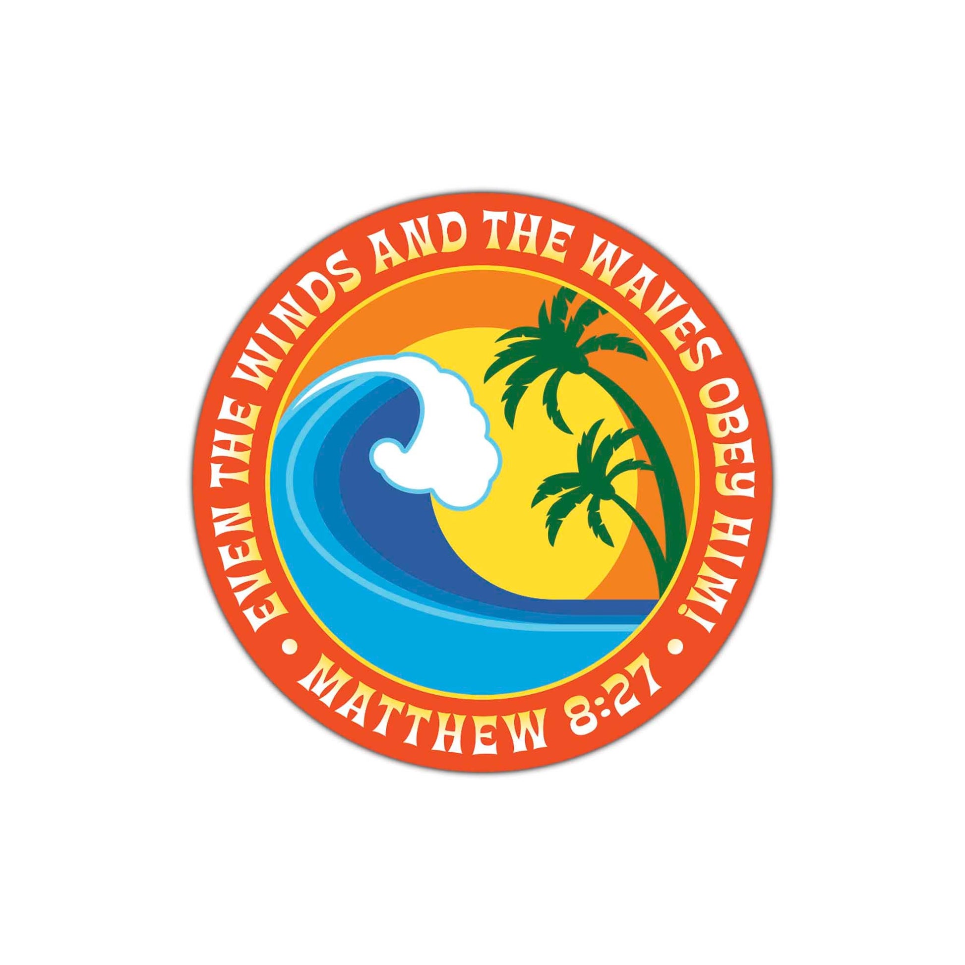 Even The Breeze And The Ocean Bow Down To His Command, Just Like A Scene Straight Out Of A Tropical Postcard With Palm Trees Swaying And The Sun Shining Bright. Inspired By Matthew 8:27, This Scripture Sticker Is A Blend Of Blue And Orange Hues, Capturing The Essence Of Divine Power In Paradise. Words Read: Even The Winds And Waves Obey Him. Place On Books, Lockers, Refrigerator, Bible, Notebook, Journal And More.