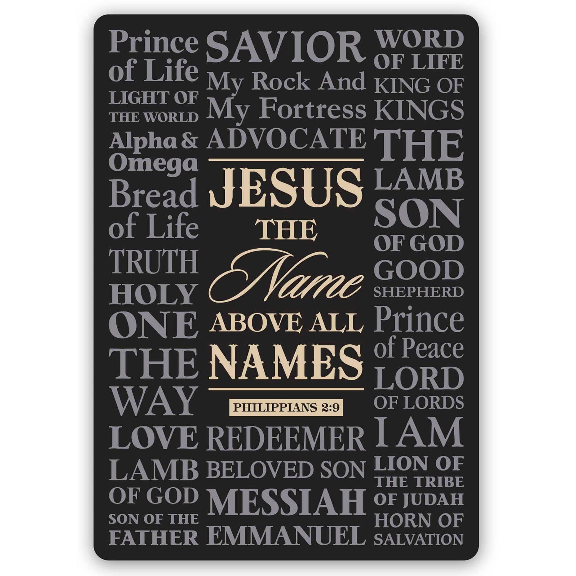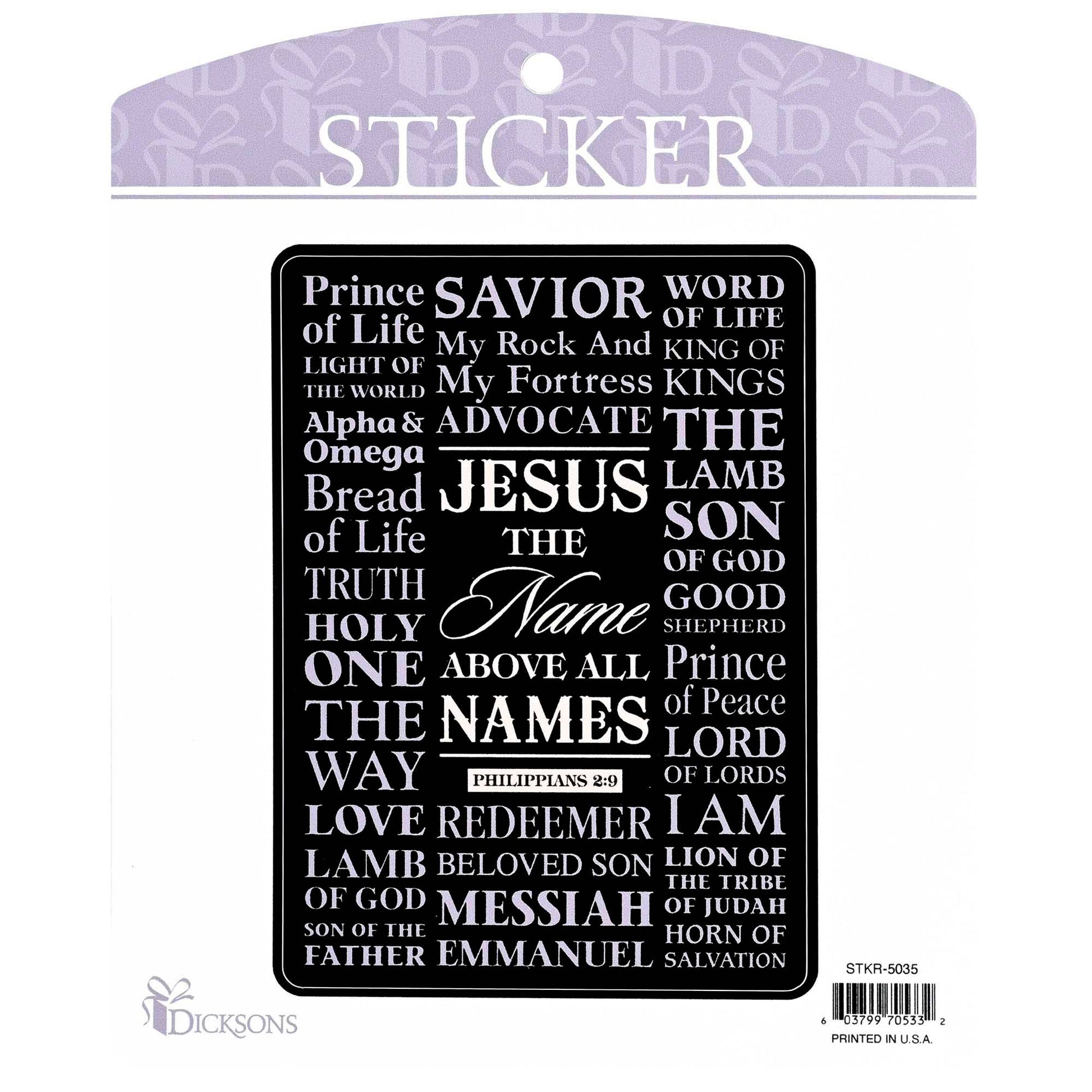 This Sticker Features Many Names Of Jesus With Reference To Philippians 2:9; Names Are Printed Boldly On A Black Background. Place On Books, Lockers, Refrigerator, Bible, Notebook, Journal And More.
