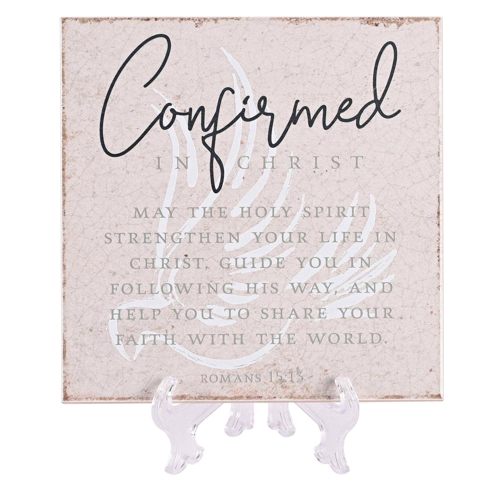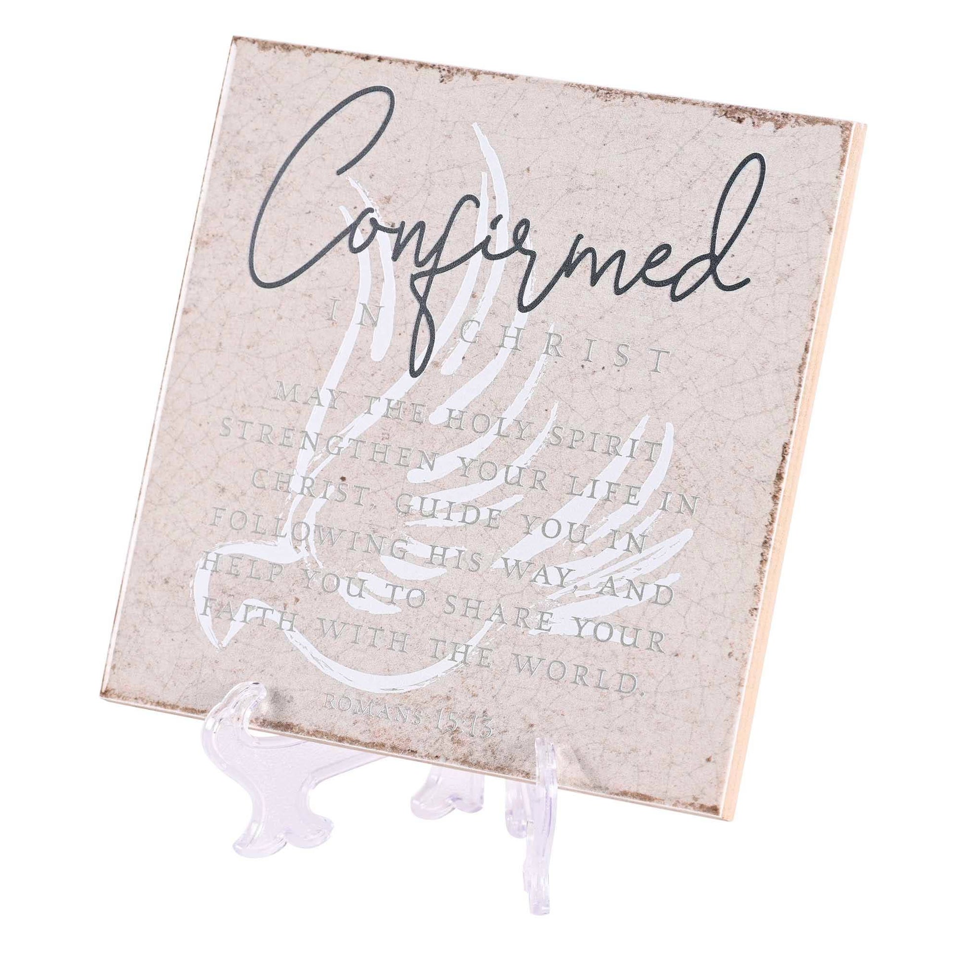 This Tabletop Tile Makes A Great Confirmation Gift. Made Of Ceramic And Accompanied By An Easel, It Features A Watermarked Dove And Text: May The Holy Spirit Strengthen Your Life In Christ, Guide You In Following His Way, And Help You To Share Your Faith With The World. Size Is 6x6.