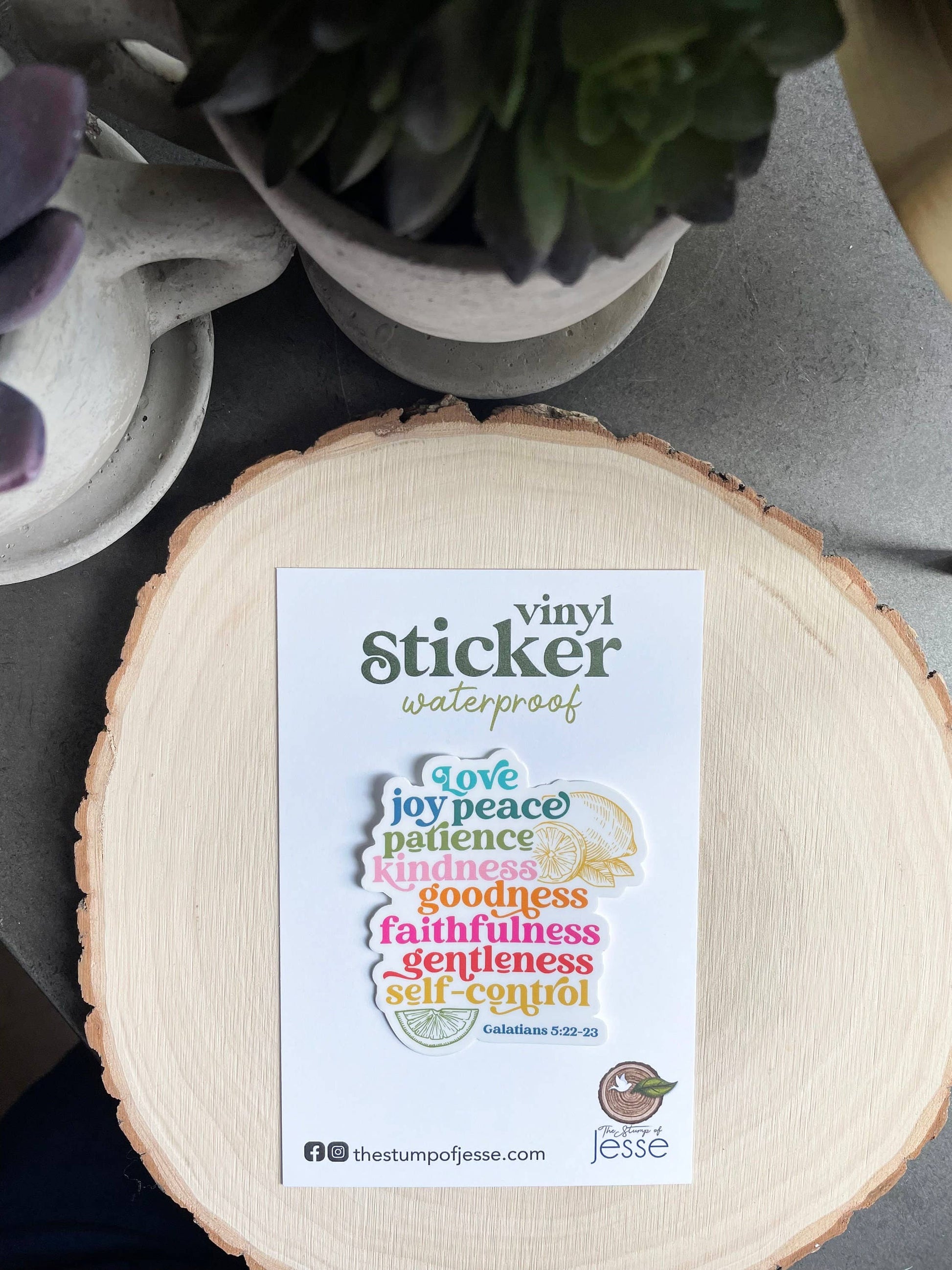 The Fruits Of The Holy Spirit Waterproof Sticker | Vinyl Sticker | Galatians 5:22-23 | Catholic Sticker | Christian Sticker | Laptop Sticker