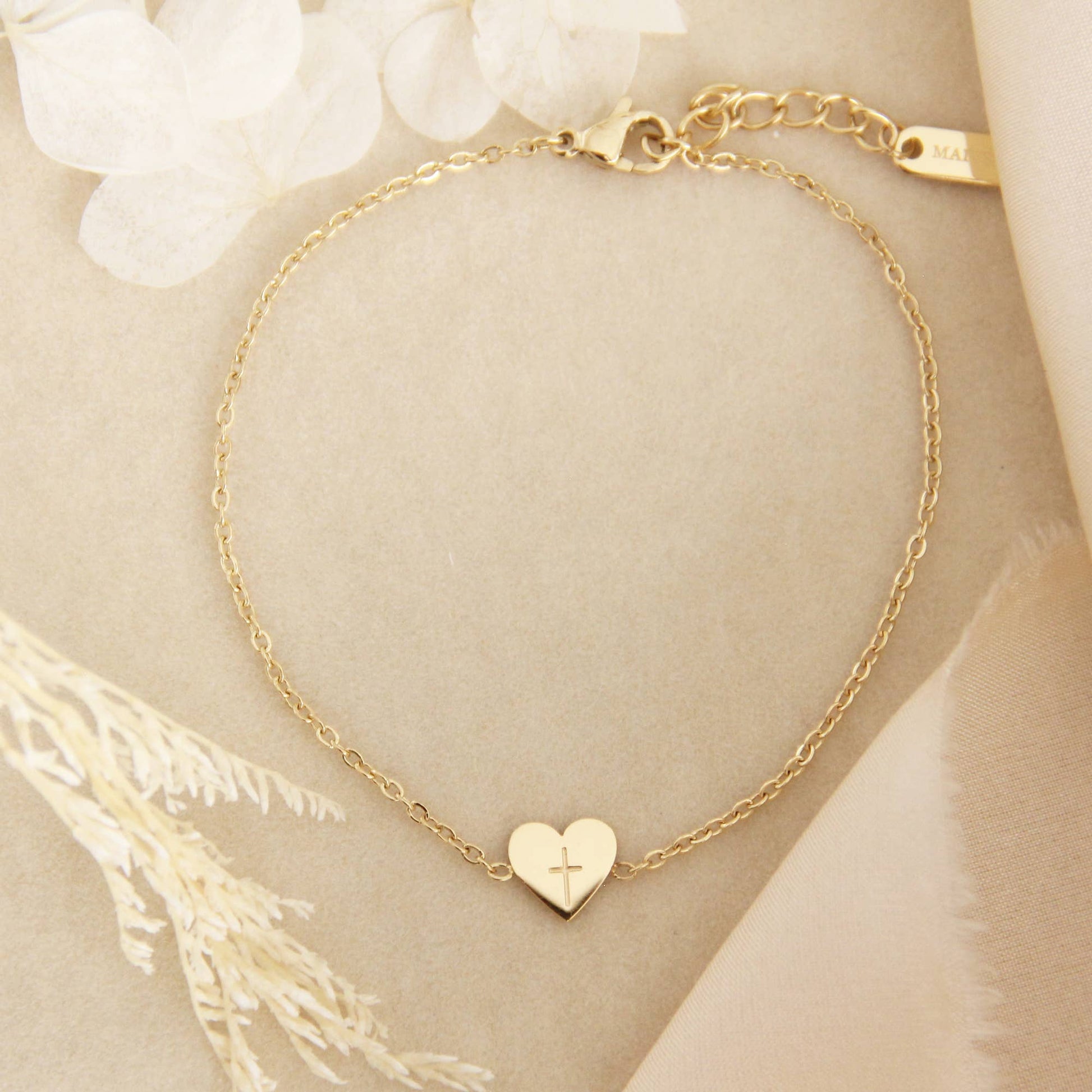 Tiny Heart Cross Bracelet