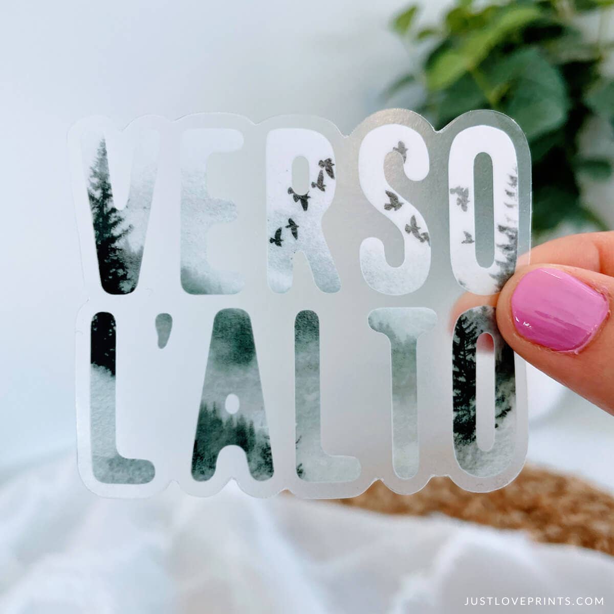 Verso L'alto means "to the heights!" and was the phase written on a photograph of Blessed Pier Giorgio Frassati's last mountain climb which reminds us to always be reaching higher for God. Proudly display this sticker on your water bottle (it's dishwasher safe!), car window, skateboard, or bike helmet.