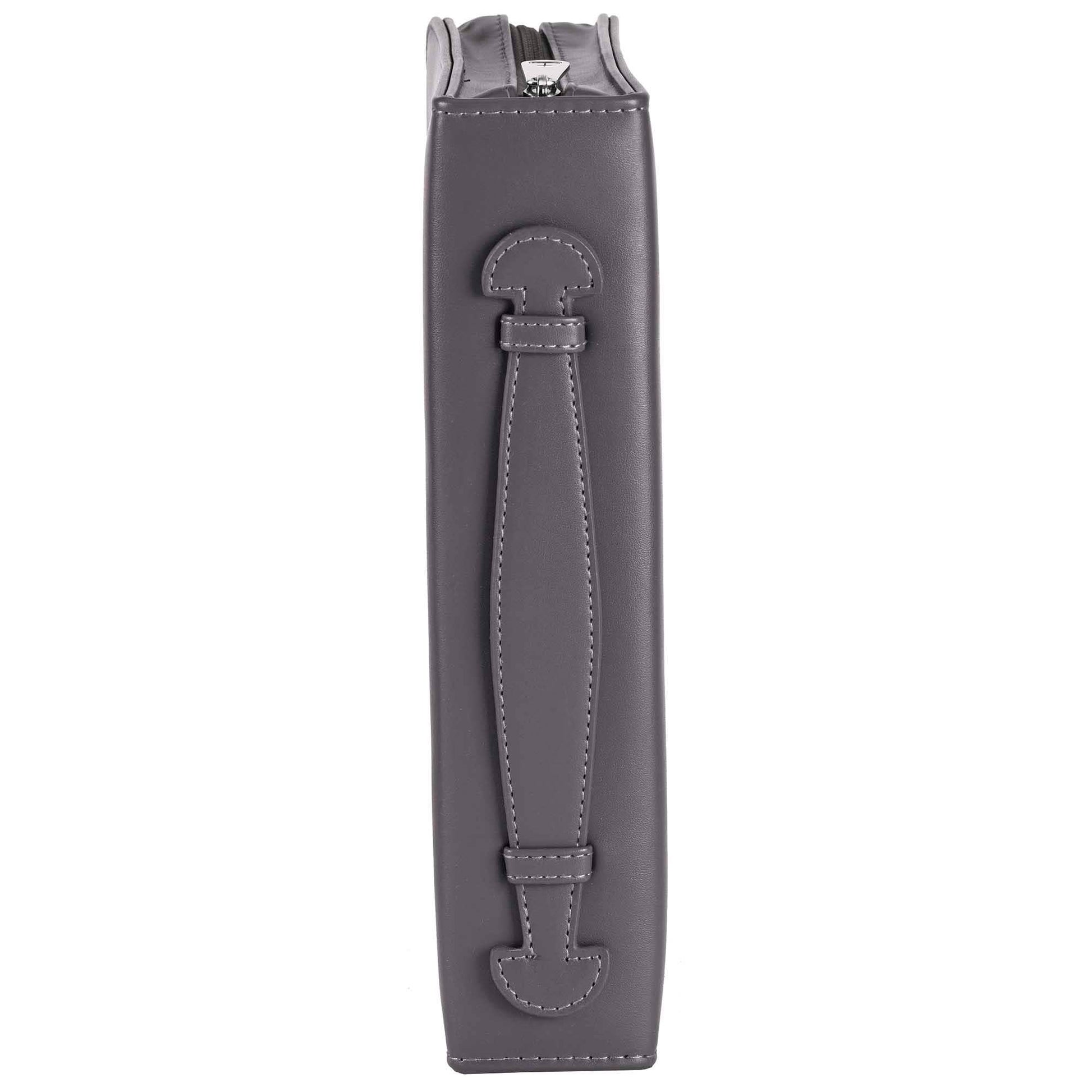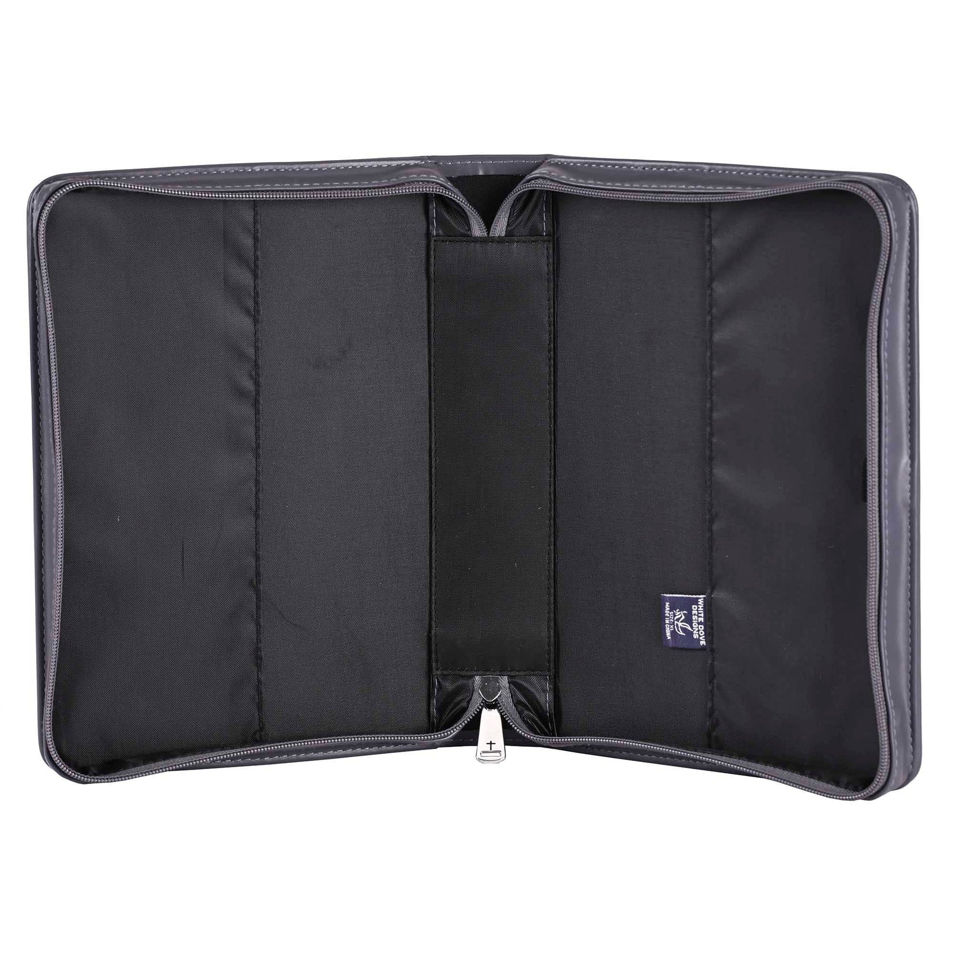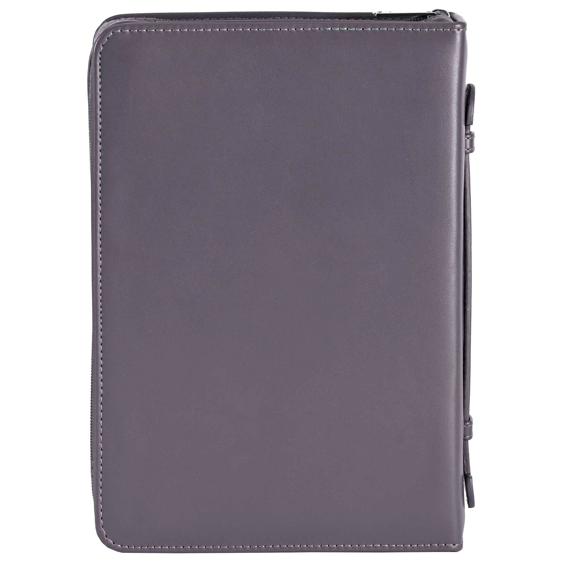 Gray Polyurethane Hard-Shell Bible Cover With An Embossed Dove On The Front. Features A Cross Zipper Pull, Lay-Flat Construction, An Elastic Pen Loop, Non-Rusting Self-Repairing Zipper And Nylon Reinforced Stitching. Also Has A Carrying Handle On The Spine. Approximate Extra-Large-Size Dimensions 10-1/4 X 2 X 7-1/4. White Dove design.
